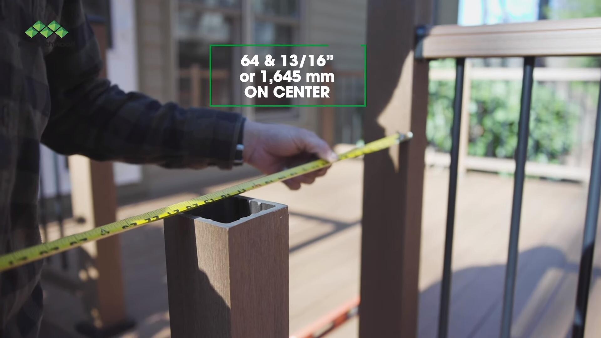 - Mark position of the post. Make markings where the post mount will go. Post mounts cannot be more than 64-13/16 inches apart.